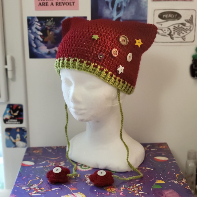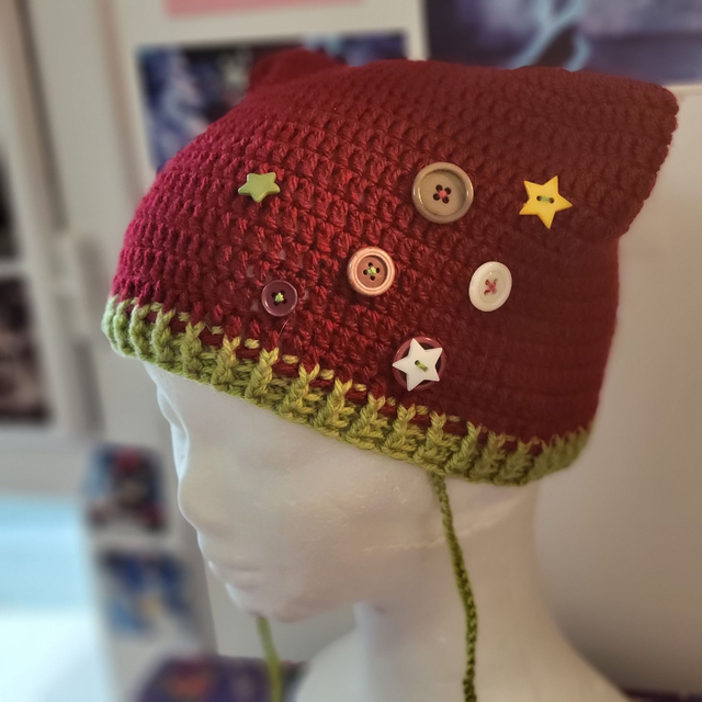 ☆Bonnet chat à boutons en crochet☆